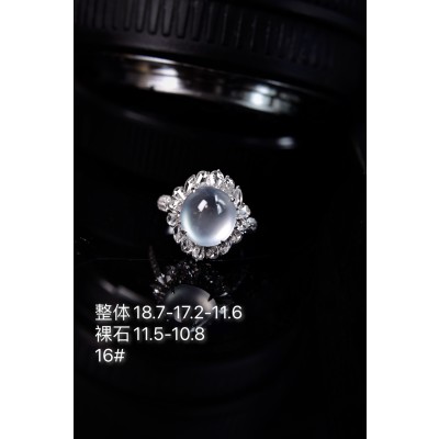 ひすいの指輪、18k金の卵の面の指輪をはめ込んで、大きなダイヤ全体:18.7-17.2-11.6裸石:11.5-10.8