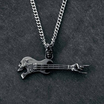 Helloice ロックジェスチャースケルトンギターブラックゴールドのペンダント