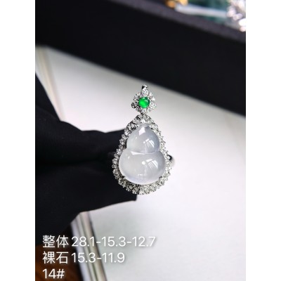 ヒスイの指輪、18kの金のヒョウタンの指輪ペンダント、全体:29.5-16.1-13.0、裸石:15.3-11.7です