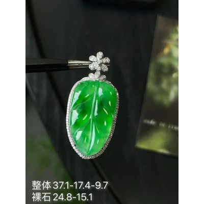 エメラルドのペンダント、18金の緑の葉のペンダント、全体:37.1-17.4-9.7、裸石:24.8-15.1